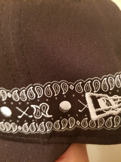 ゴルフモチーフのペイズリーのラインが入ったカッコイイ帽子だよの図