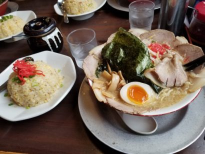 チョイスしたメニューも安定のチャーシューメンと半チャーハンだよの図