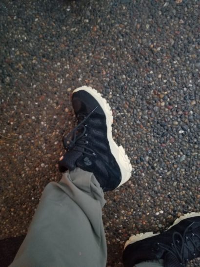 ちゃんと紐を結んでガッツリ履いて登山でもしたくなる気分。