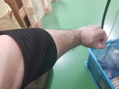 肘よりもうちょっと先の辺りをバンドの様なもので圧迫するほうが
