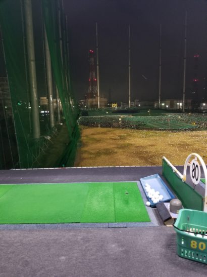 ゴルフ練習場には夜になれば空いていると思ったけれども割と人が入るようになっていたので一番端っこで黙々と練習だよの図