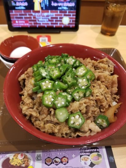 牛丼界の芸術と言っても過言ではない、かつぶしオクラ牛丼だよの図