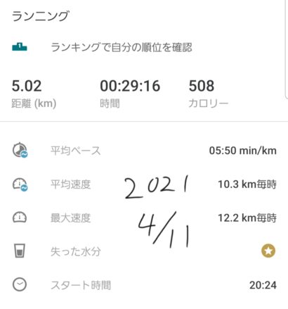 マスクなしでランニングしたらまぁまぁのタイムのランニング。