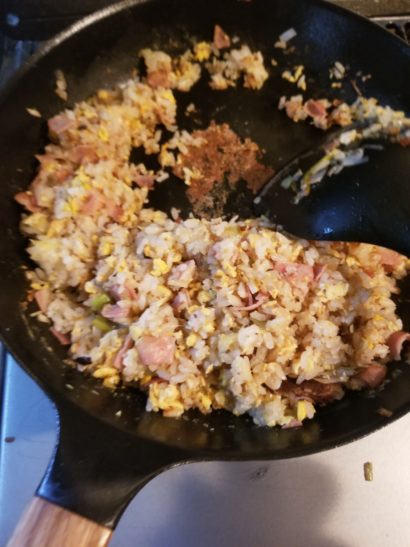 ベーコンとネギだけのシンプルなチャーハンだよの図