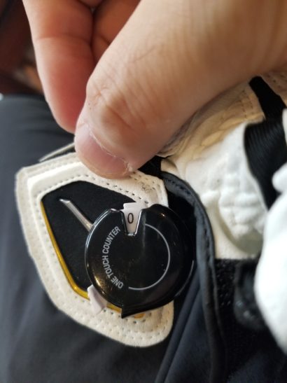 ゴルフコースを回ったときのアウターの袖口からポロッと出てきたスコアカウンターだよの図