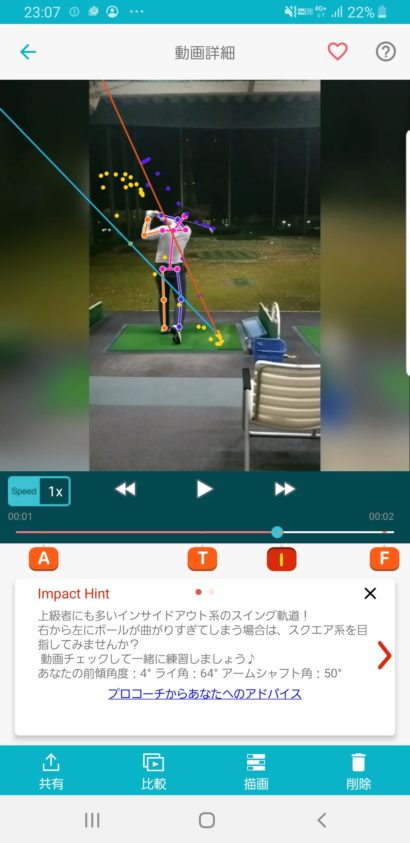 インサイドアウトのスイング軌道がちゃんとできているらしいよの図