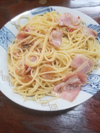 最近のテーマのペペロンチーノ作り。