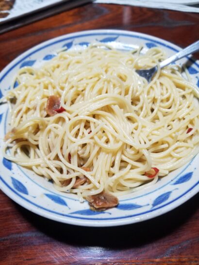 ニンニクと鷹の爪オンリーのシンプル極まりないペペロンチーノを目指すの図