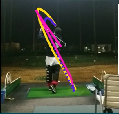 テイクバックとダウンスイングの軌道がほぼほぼ一直線になりましたの図
