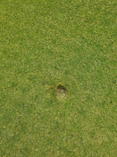 グリーンオンした衝撃でグリーンの表面に開いてしまう穴だよの図