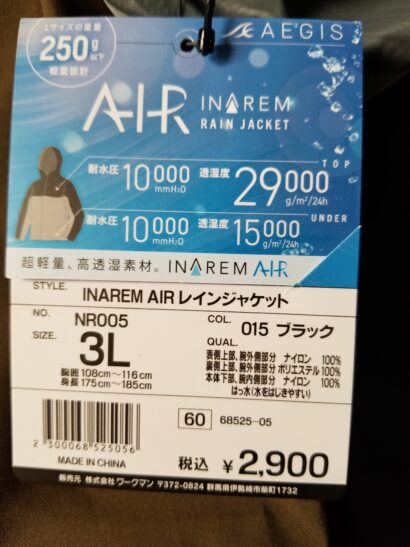 新しく出た?イナレムAIRの3Lだとなんとか服の上からでもストレス無く着れるサイズ感になっていたので購入。
