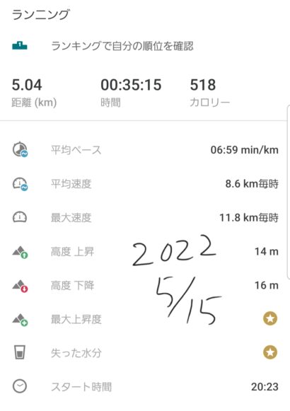 ってゆーか5キロ完走する体力もメンタルも戻ってこないまま。途中1キロほどウォーキングタイムが必要な状態。