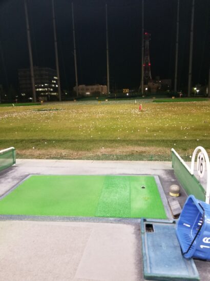 突然週末にゴルフコースに行くことになり妙な緊張感をもって練習場に来ましたの図