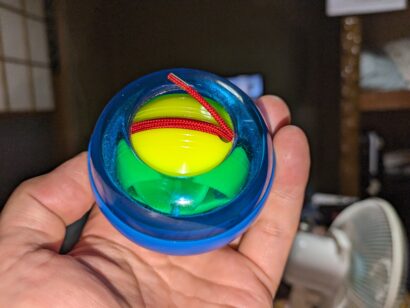 中の玉を回転させながら握ることで鍛えられるという不思議器具。