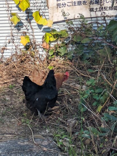 ダチョウよりも野放しのニワトリに少しビビったよの図
