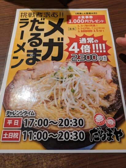 久しぶりに行ったマイホームラーメン屋とも言えるだるまや