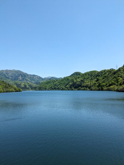 青空と緑の山々と湖の最高のコラボレーション。