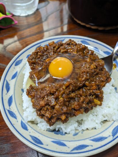 なんとなくキーマカレーって卵が乗ってるイメージあるよねホントは卵黄だけなのかな?の図