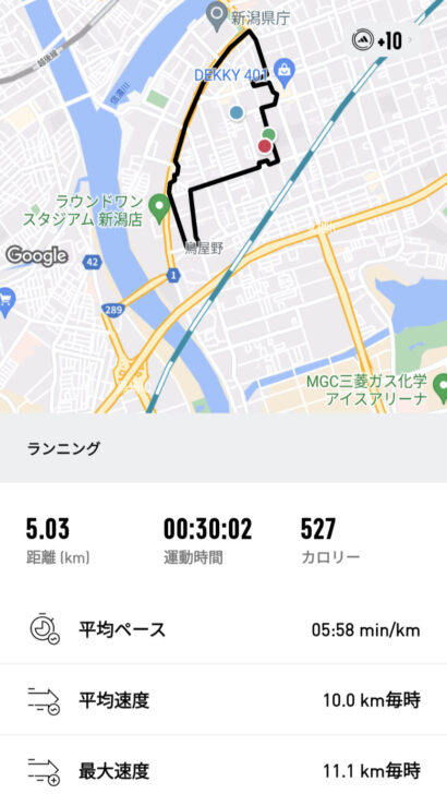 ちょっと軽めのウェアで走ったからか体が軽く感じたけれども
