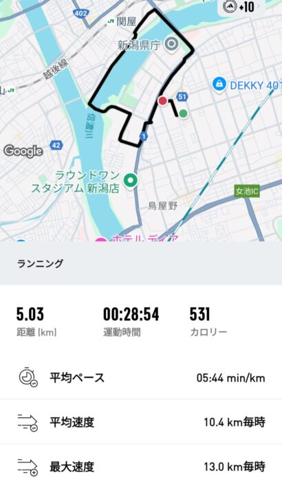 最後の1キロは橋の下り坂を利用したとは言え自己最速を記録したはずだよの図