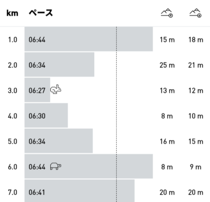 ペースもいつもより1分くらい遅いけれども