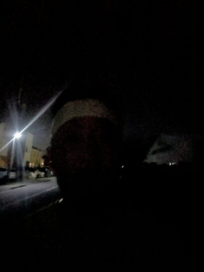 夜道で微妙に見える白いヘアバンドを身に着けて走るアイズの図