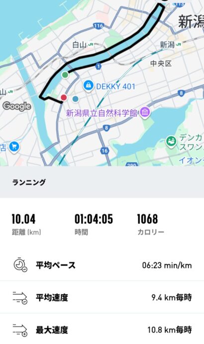 やすらぎ提を走って柳都大橋でぐるっと回って帰ってくるとちょうど10キロくらいらしい。