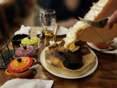ハイジでお馴染みのラクレットチーズを肉にかけるなんて、なんて贅沢な。