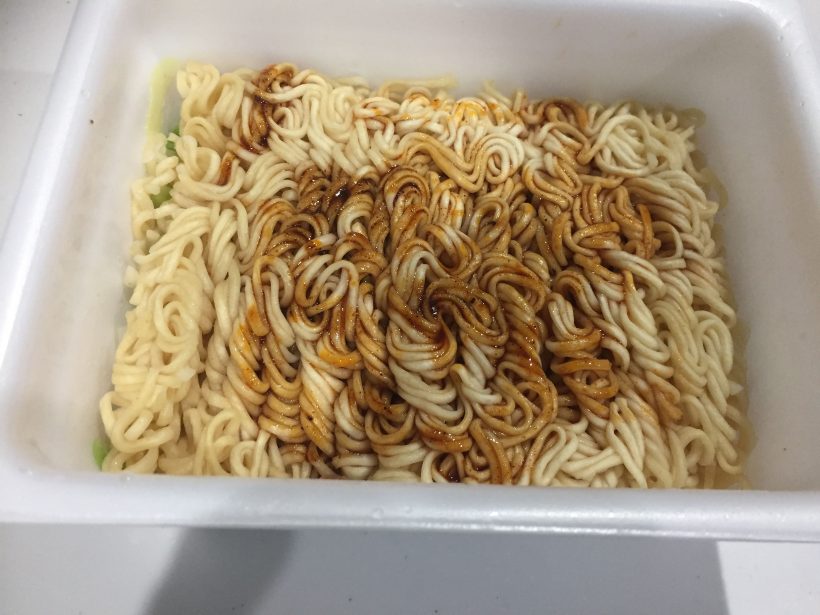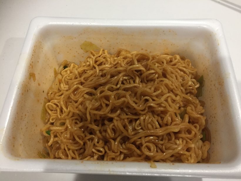 見た目は通常ペヤングよりも少し赤い印象(ラー油かな?)。
