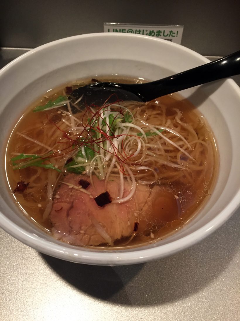 F山は最近外食が続いていてお金がピンチなので、コスパ重視で琥珀醤油ラーメンを注文です。
