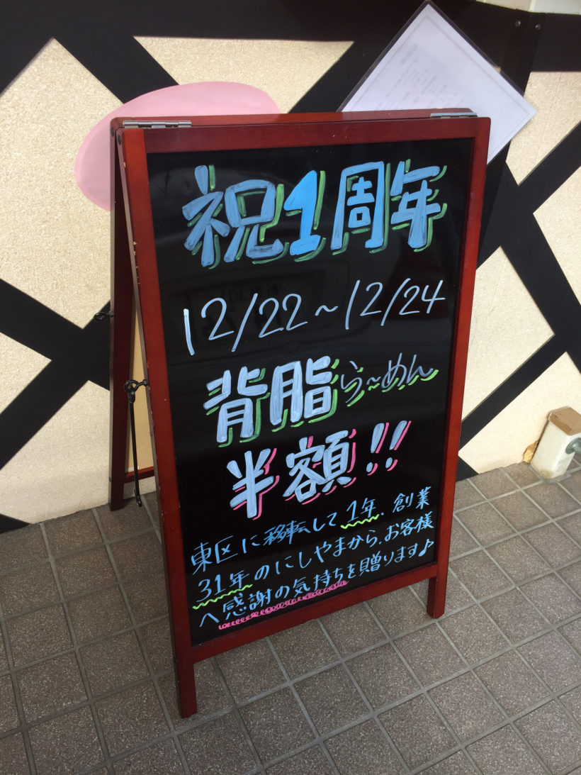 背脂らーめんが通常650円のところ、なんと半額です。