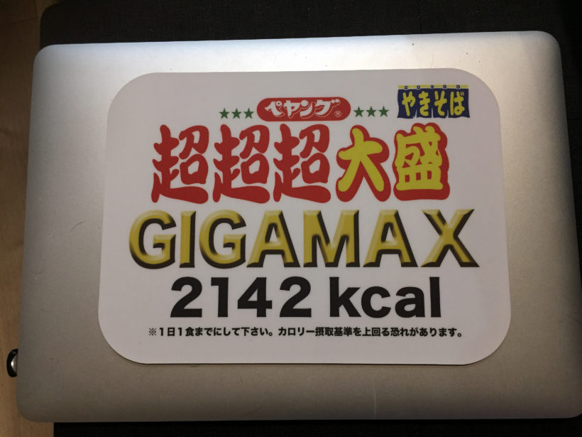 ある日帰宅すると、F山の作業机(仮)に「超超超大盛GIGAMAX 2142kcal」なペヤングが置かれていました。