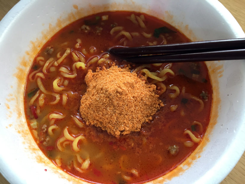 地獄の担々麺 護摩龍は、ペヤングENDと比べると全然辛くない感じ。
