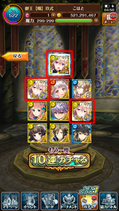 そんなことを思いながら、10連ガチャを引いた結果がコチラ。