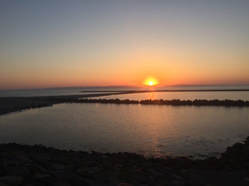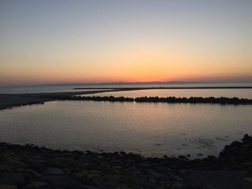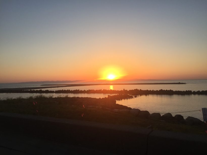 そしてこのあたりだと夕日は海に落ちるのではなく、佐渡に落ちるんですね。