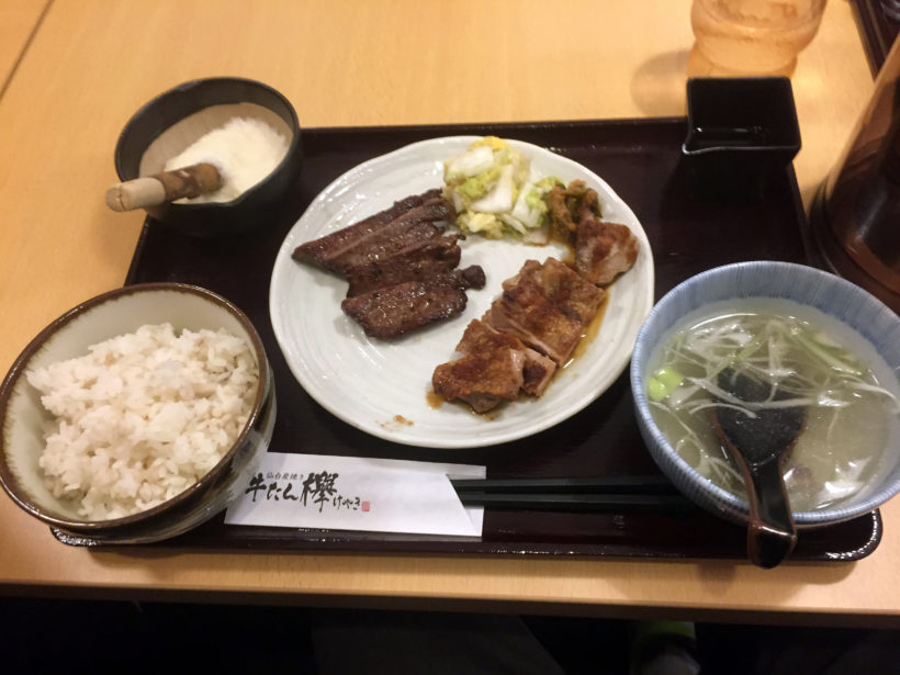 メニューの名前は忘れましたが、牛たんと鶏肉のセットだったと思います。