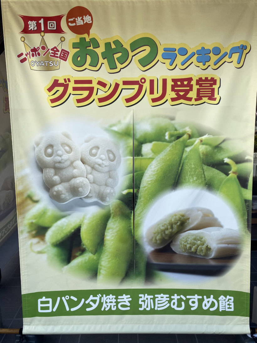 弥彦に来たら買っておきたいのが「白パンダ焼き 弥彦むすめ餡」。