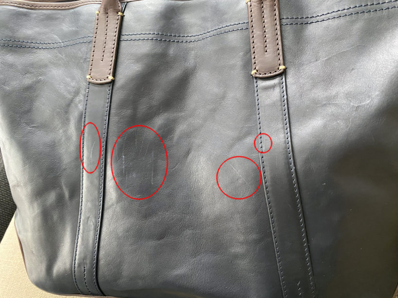 実は昨日のブログでも書いたCORBO.の直営店で開店待ちをしているときに、先日買ったNELDのトートバックを道路に落としてしまい、キズをつけてしまいました。