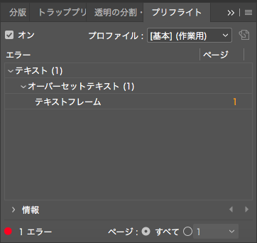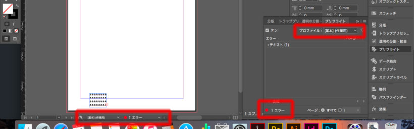 プリフライト機能を使うとドキュメント内にある不具合を見つけてくれます。