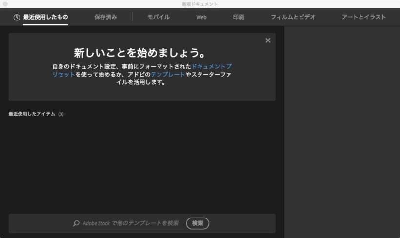 Adobe Creative Cloudのあるバージョンから、新規ドキュメントを作る時の画面表示が変わりました。