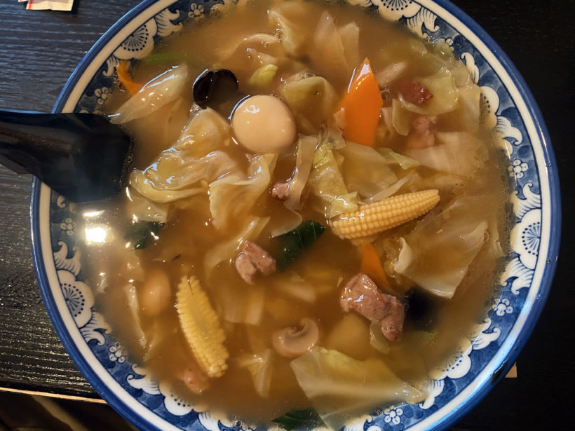 そのぶん特徴も出にくい感じがしますが、一平の五目ラーメンは「スープの煮干出汁が強い」ところではないでしょうか。