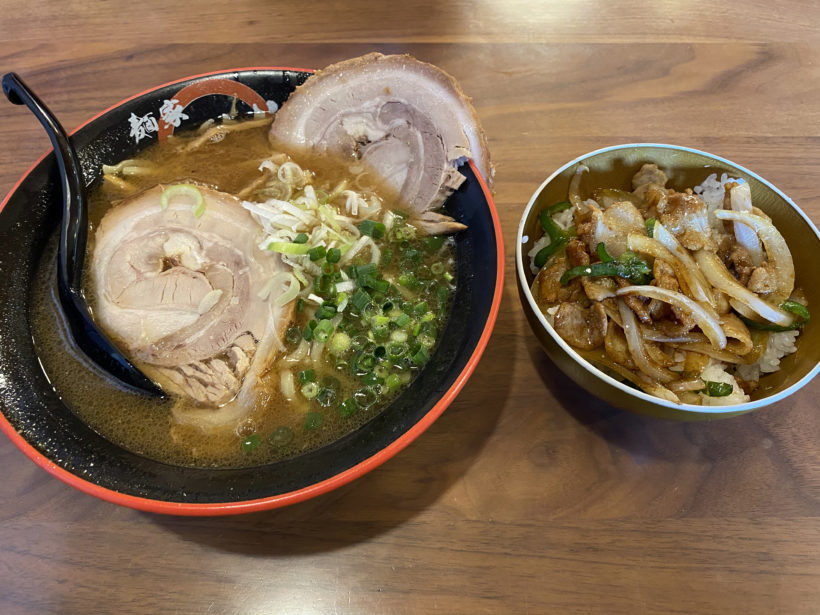 F山は「魚介+豚骨Wスープらー麺」と「チンジャオロース丼」のセットを注文。