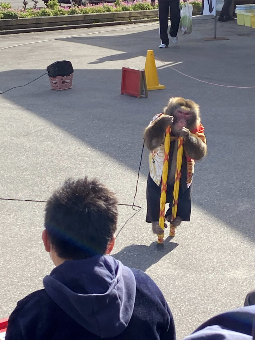 というのは冗談として、お猿さんもしっかり芸をこなしています。