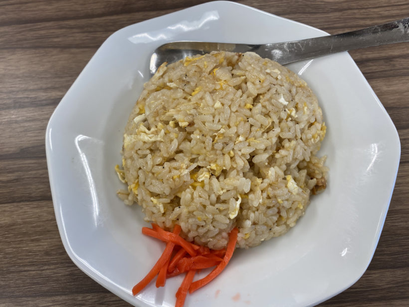 タダで食べて帰るのも気が引けるので、半チャーハンを追加しました。