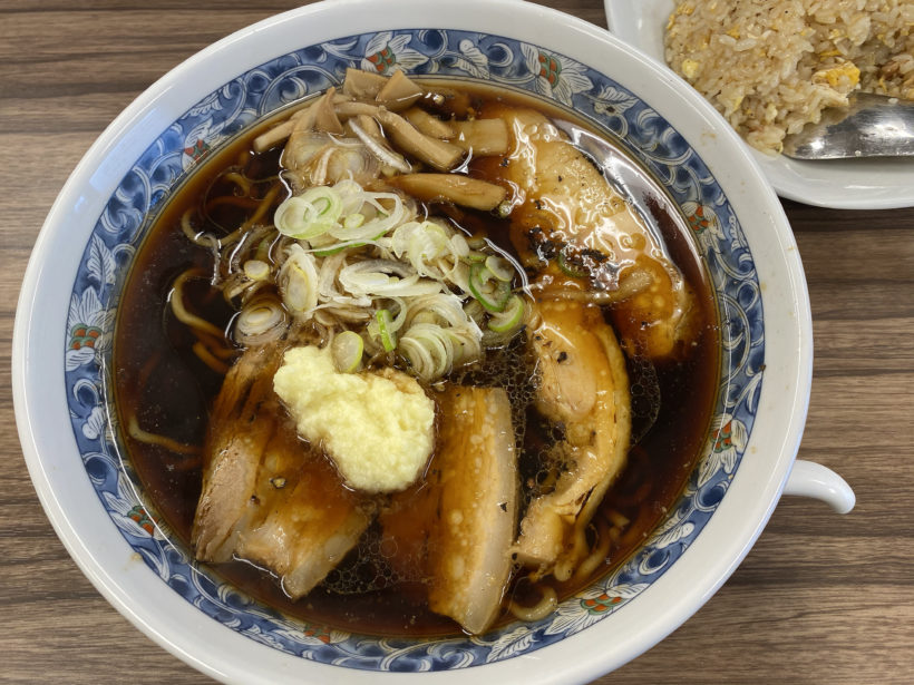 長岡の生姜醤油のイメージだと思いますが、独特なのはスープにすりおろした生姜がトッピングされているところではないでしょうか。