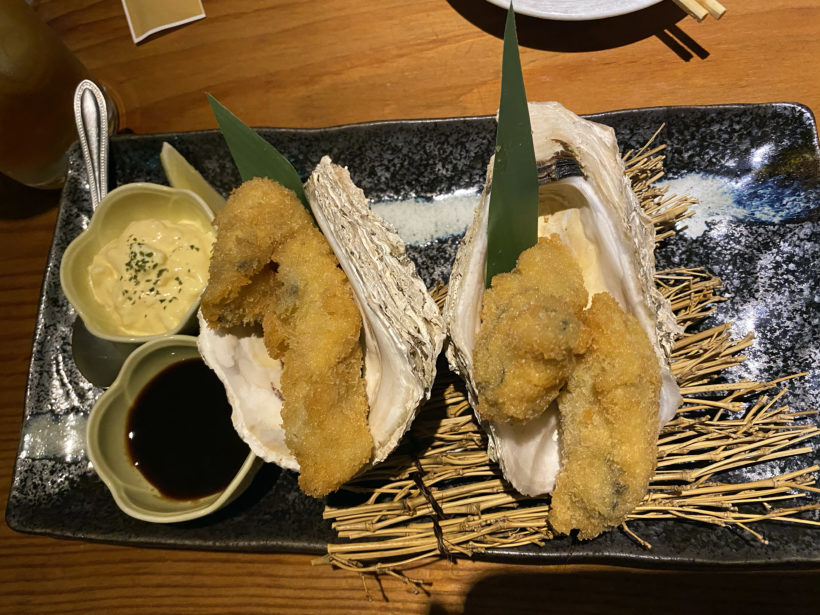 食べ物もいろいろありましたが、カキフライがバエ要素高かったかなと。