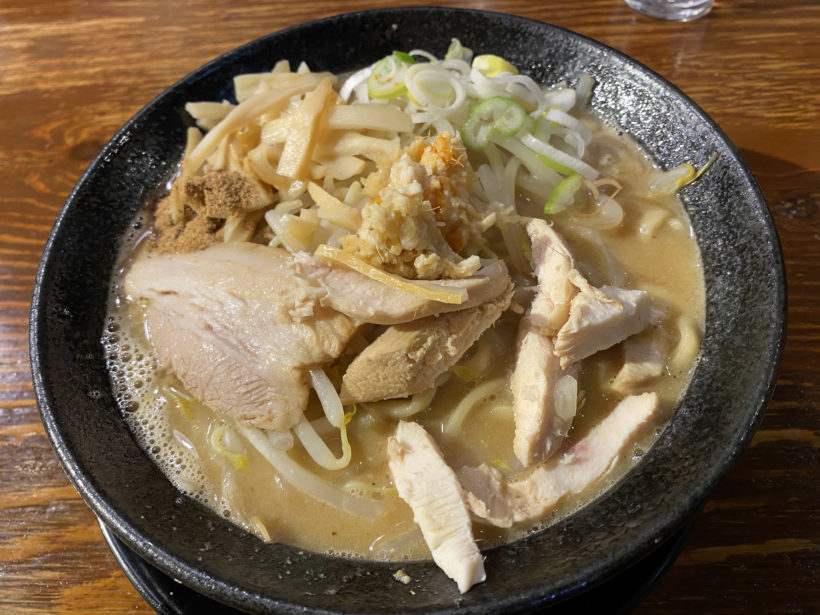 八ちゃんラーメンでは780円までのラーメンが食べられるとのことだったので、「濃厚魚介味噌そば」を注文。