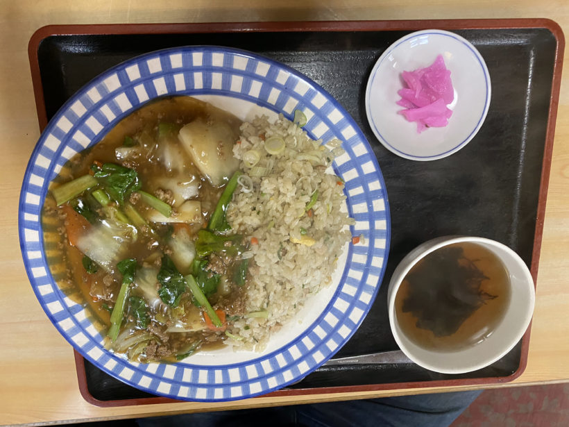 ちょうどその日に出社していたヒース氏と一緒に行ったのですが、ヒース氏は「五目あんかけチャーハン(大盛)」を注文。