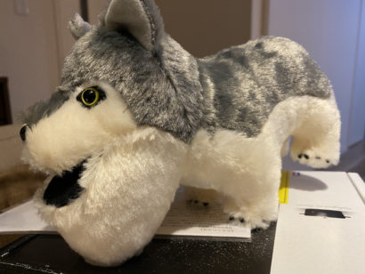 シャクレた顎のせいで4本足で立つのが難しい様子。