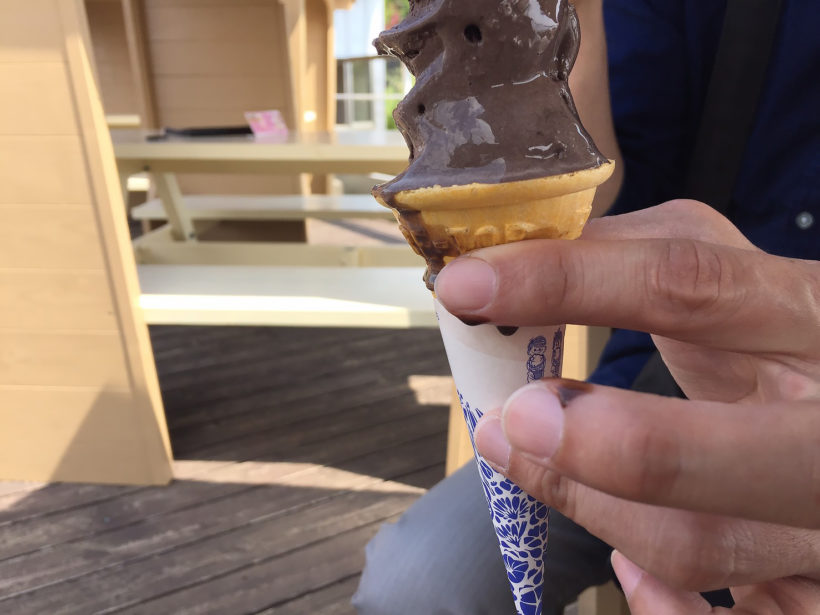 風が強めだったので、アイスが溶けるのが早い!!